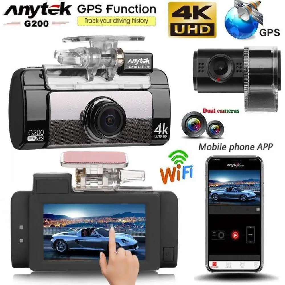 Price Description of Anytek G200 2.7" IPS Touch Screen 4K UHD WiFi Car DVR Camera Dual Lens GPS Logger Video Recorder Night Vision G-sensor Dash Cam
