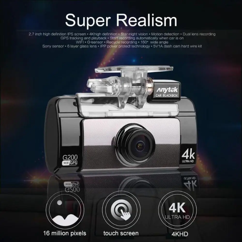 Addition Information of Anytek G200 2.7" IPS Touch Screen 4K UHD WiFi Car DVR Camera Dual Lens GPS Logger Video Recorder Night Vision G-sensor Dash Cam
